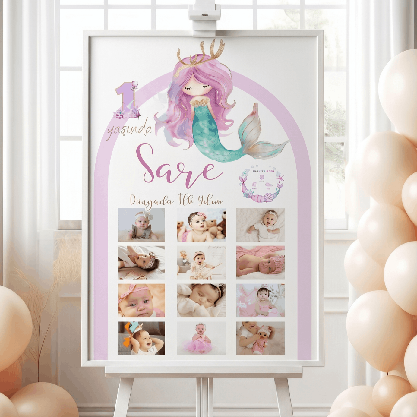 Deniz Kızı Temalı Kişiye Özel 1 Yaş Doğum Günü Anı Tablosu
